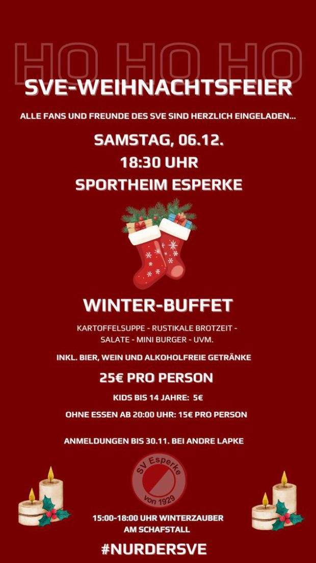 6. Dezember Weihnachtsfeier 18:30 Uhr